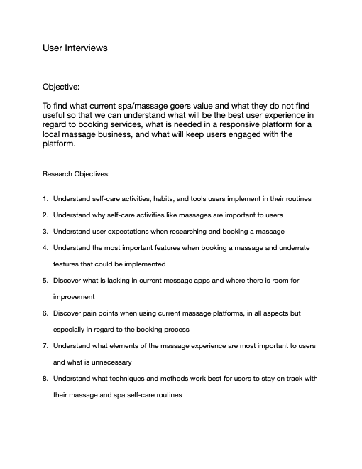 Conducting user interviews of regular spa goers