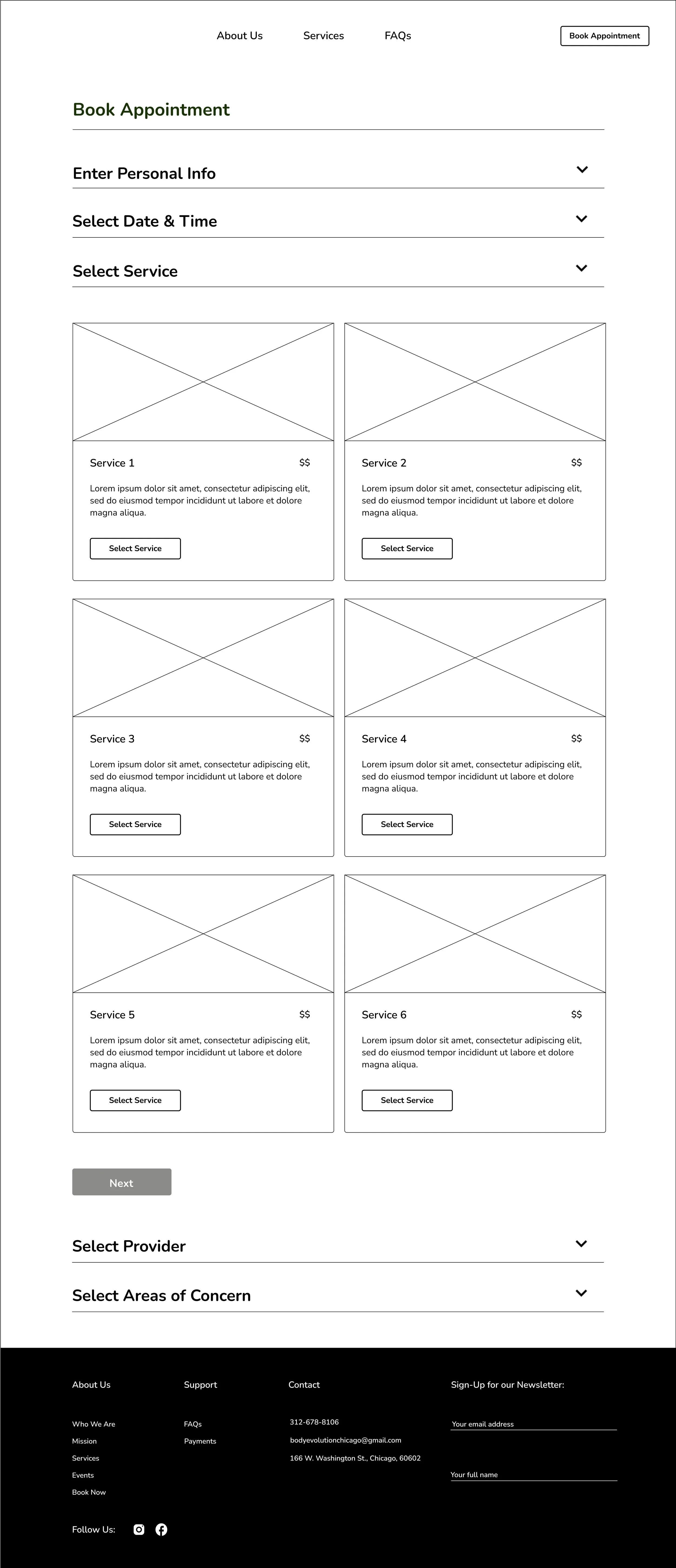 For this student project, I assumed that the business needed to utilize all of the information in its current flow, but the design and structure could be improved. I used the results of the user interviews, group critiques, and mentor feedback to finalize the design of the mid-fidelity wireframes. This stage solved the main problem of the order of the booking process and which components were pertinent and which should be omitted.