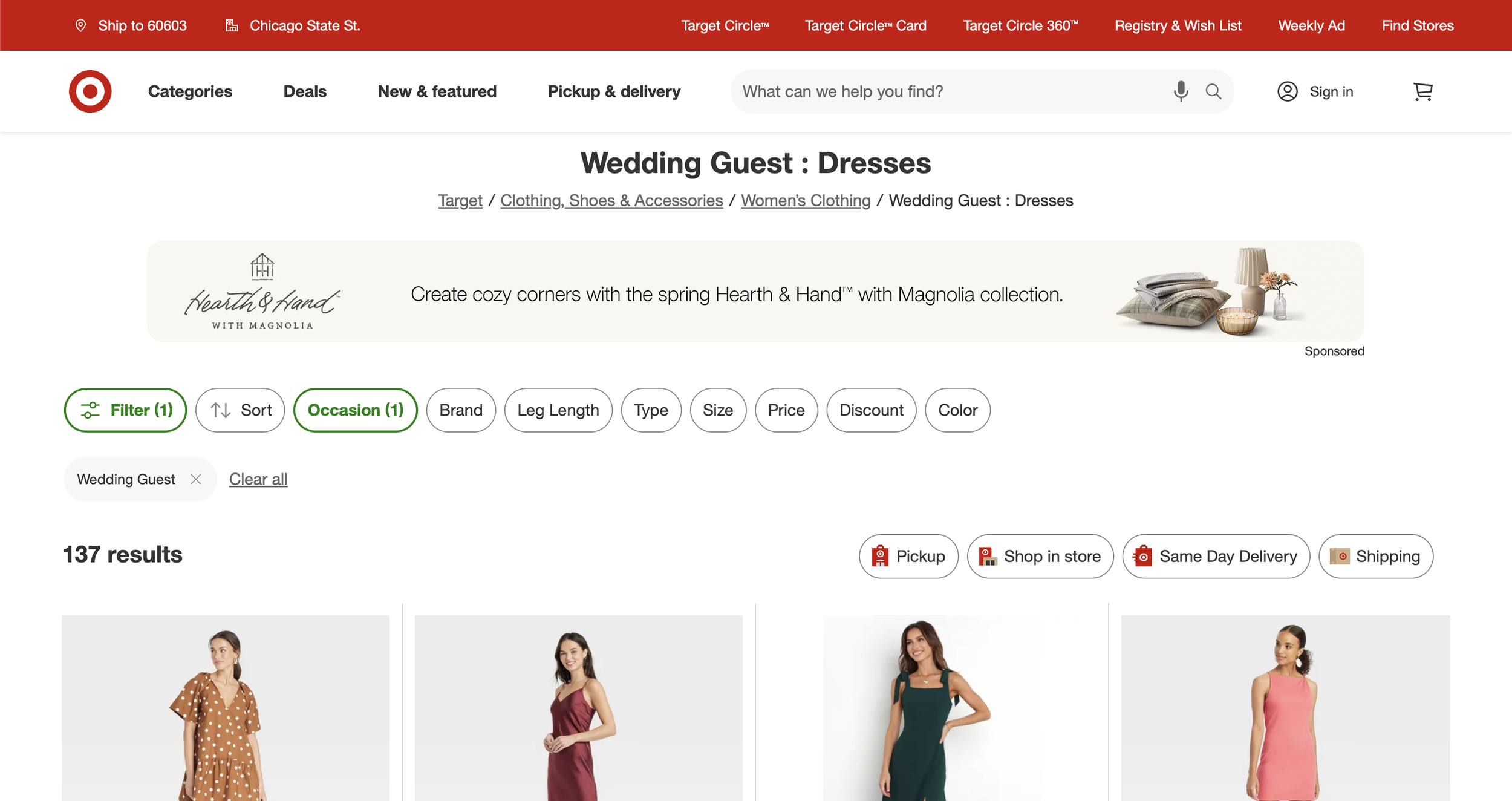 Target: Features a button design for filter and sort options, where the dropdown opens a left-hand panel for easier navigation and selection.